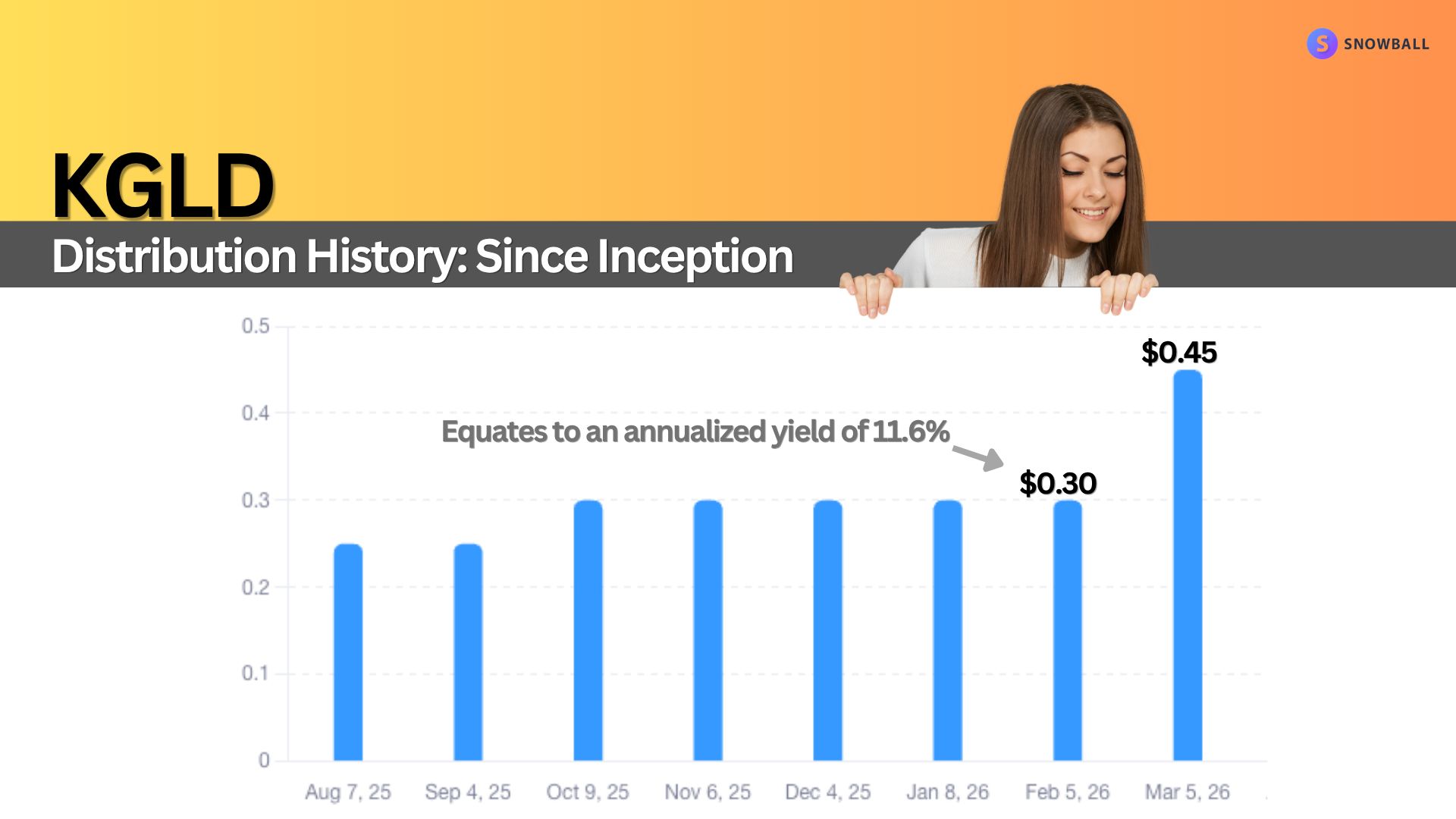 KGLD sells call options to generate an 11.6% yield (currently) from the price volatility of gold.