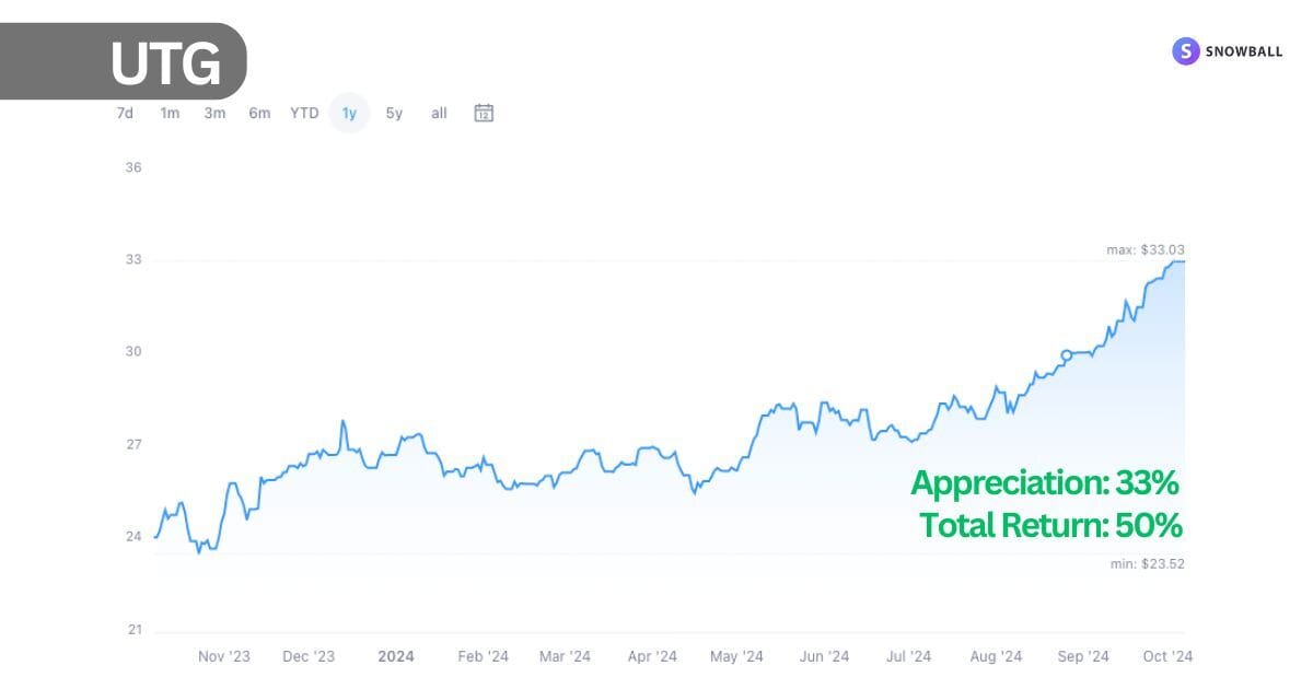 The price gains may continue, but I’m more focused on income than price, so I’m out of UTG. Generally, income is easier to forecast than price! I’ll happily buy back in on dips, as it's one of my favorite sectors/funds.